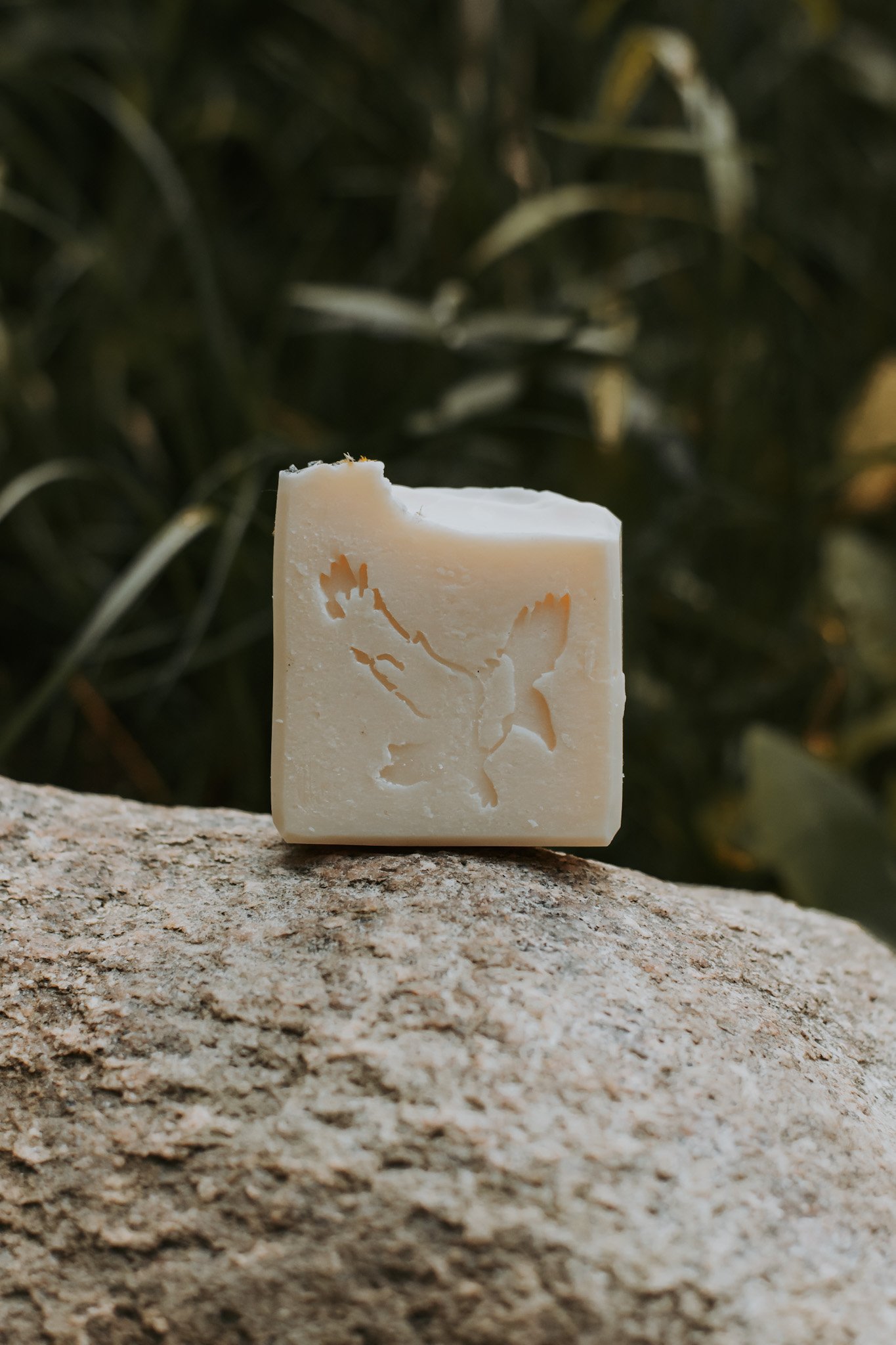Shea, castor, olive and coconut oil, solidago, saponified lye, aqua, litsea, lemon, frankincense, Hawaiian black salt